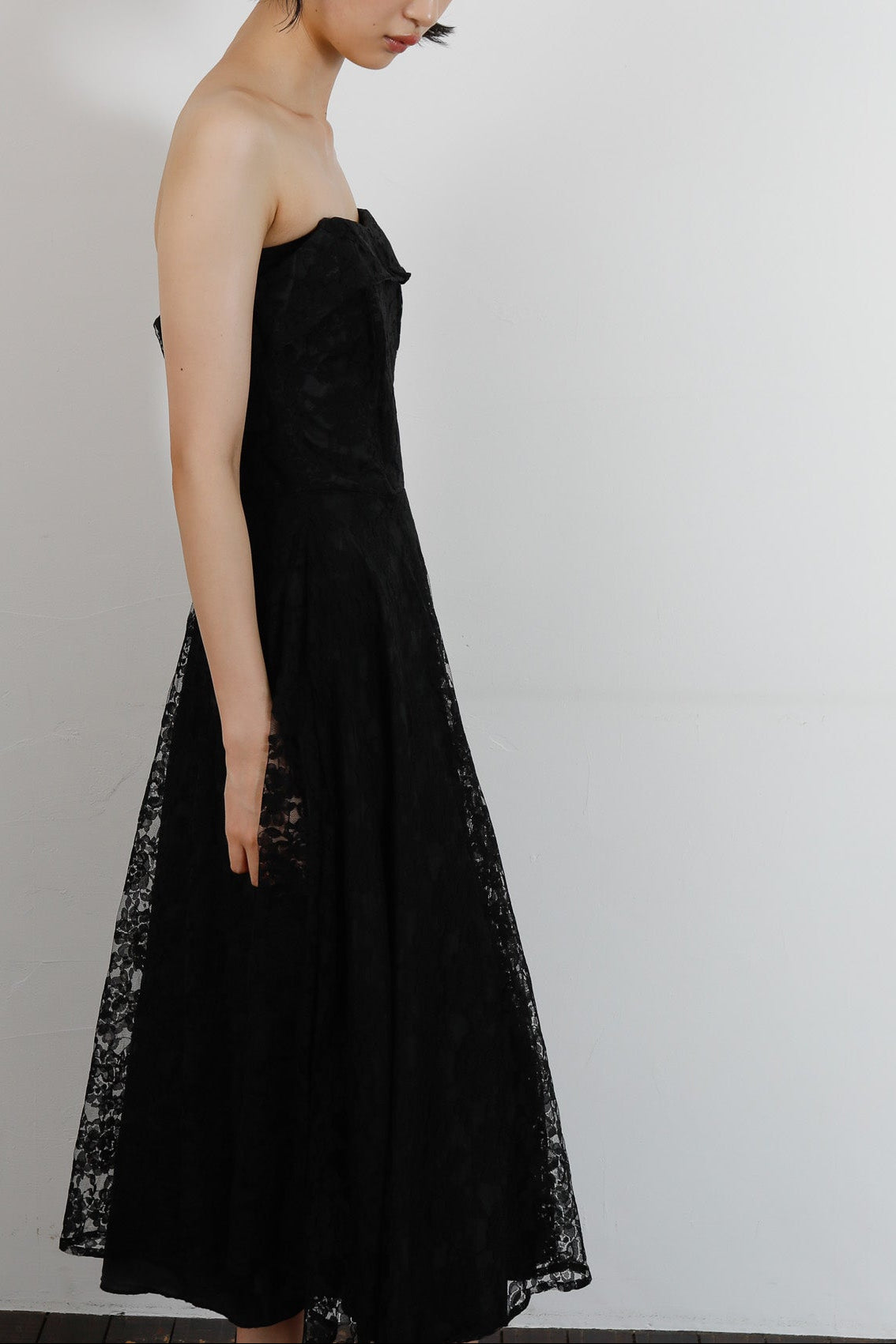 フランス買い付けの1970年代頃のレースドレス。フラワーモチーフのレースがヨーロッパらしく、デコルテの開きが非常に美しい一着。着丈も程よく幅広いオケージョンで活躍してくれます。