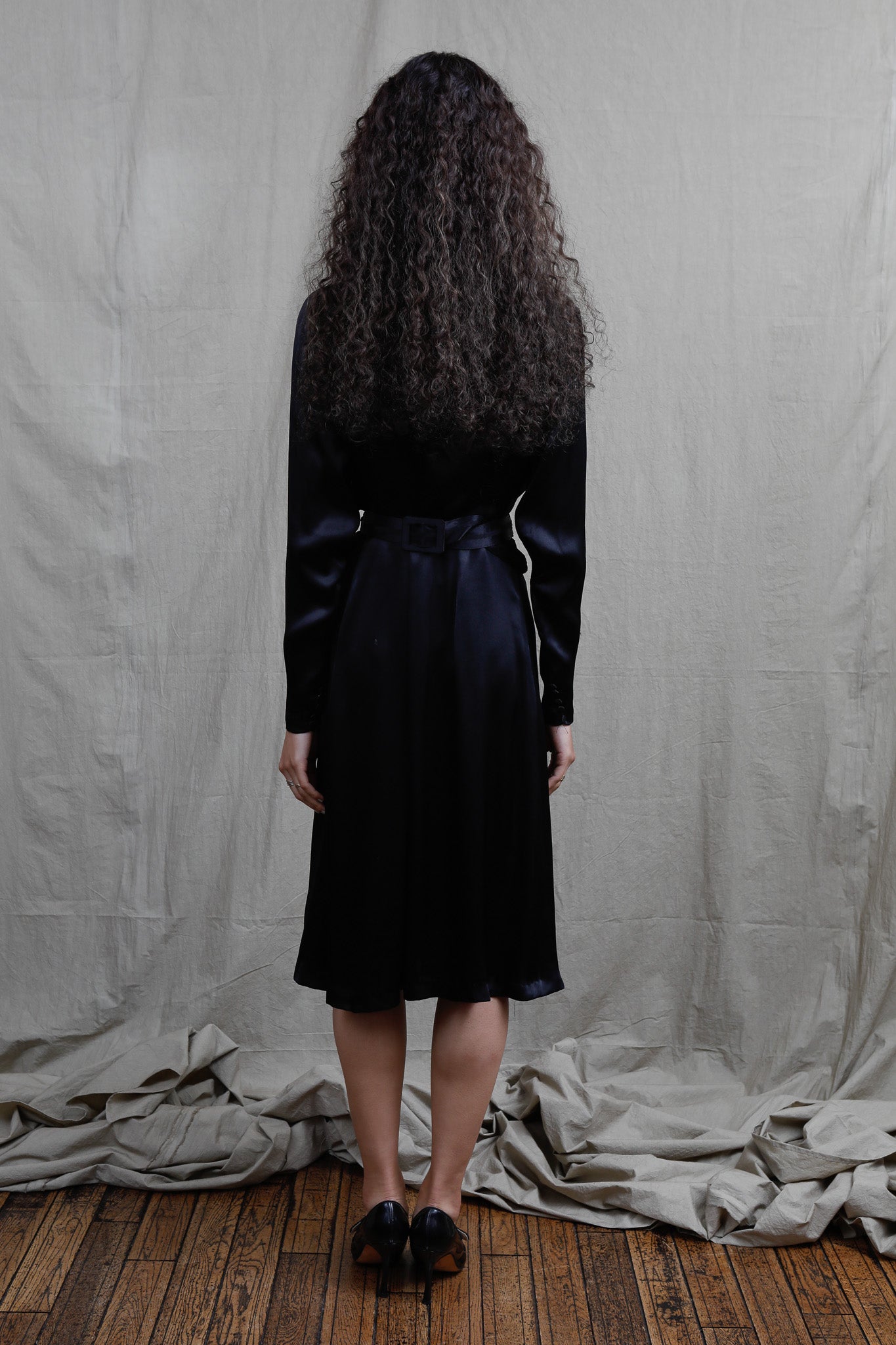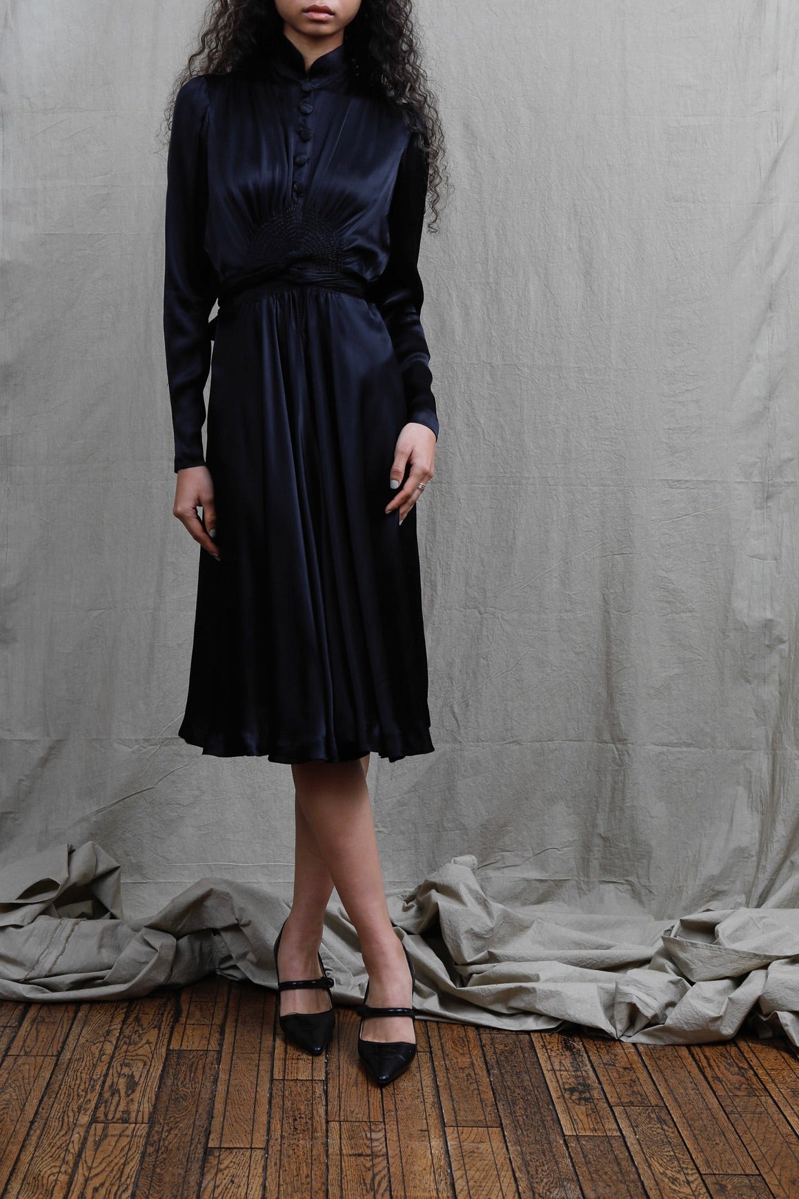 1940年代に仕立てられたスモッキング刺繍が美しいシルクドレスです。