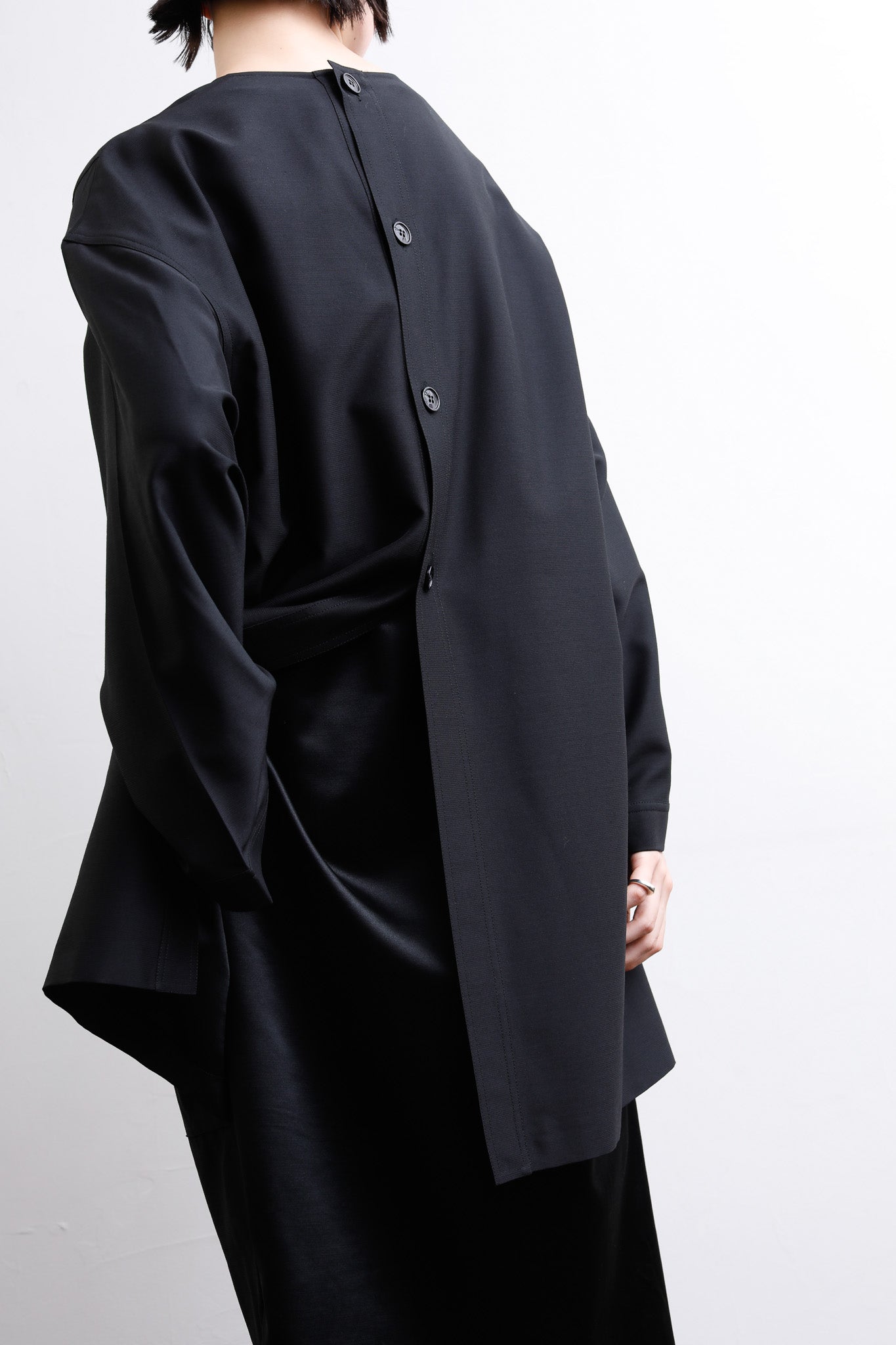 こちらはジャケットとワンピースが融合されたようなユニークな一着。モード感たっぷりでスタイリングがこの一枚で完結。