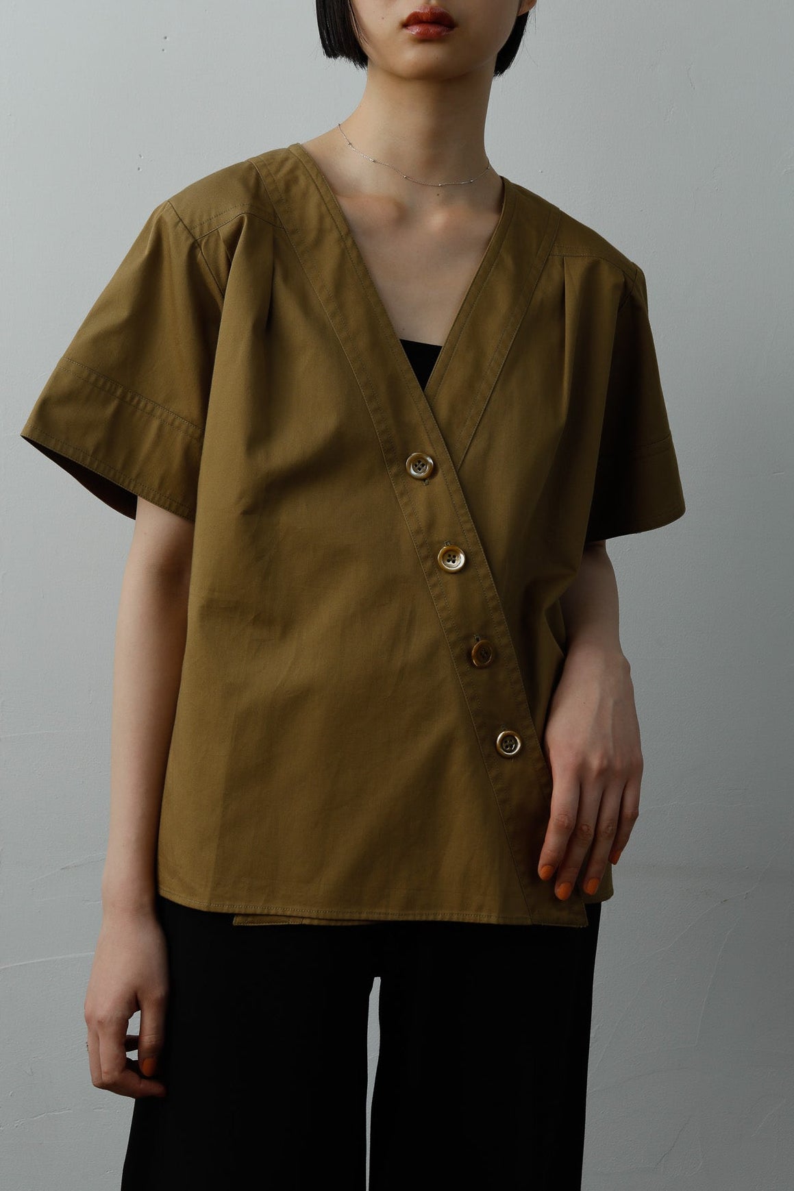 20世紀を代表する天才と呼ばれたフランスファッションデザイナー、イヴ・サンローラン。身頃が斜めにデザインされたユニークなトップス。前開きなので羽織りとしてコーディネートするのもおすすめです。深みのあるマスタードカラーは他の色にも意外とマッチしてくれます。